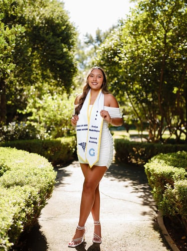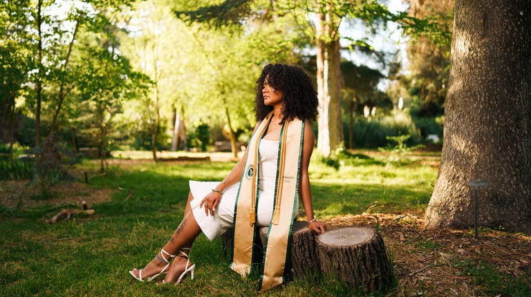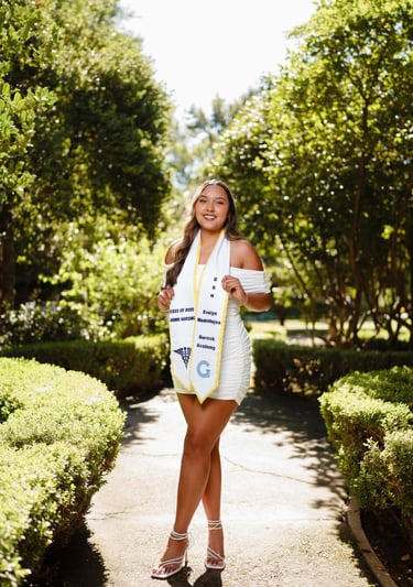 Each graduation session runs about 2 hours and typically begins around 5:00 PM to catch the best natural light. You’ll receive approximately 50 professionally edited images, delivered digitally within 72 hours — guaranteed. The shoot includes a mix of candid moments and guided poses to help you feel relaxed and confident throughout. Whether you’re bringing a cap and gown, sash, flowers, or just good vibes, we’ll capture your accomplishment in the most genuine way.